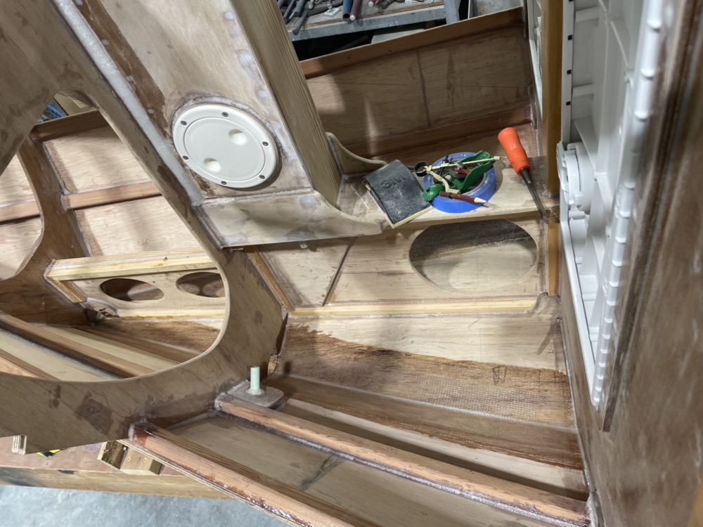 Then I come back and drive all the screws in, clean up the squeeze out, and make nice fillets at all the interior joints. It takes about 2.5 hours to install a plank and about 12oz of epoxy.
