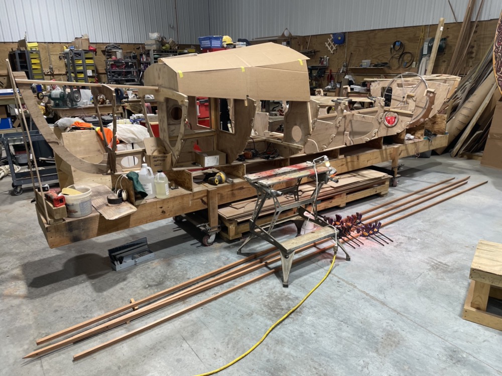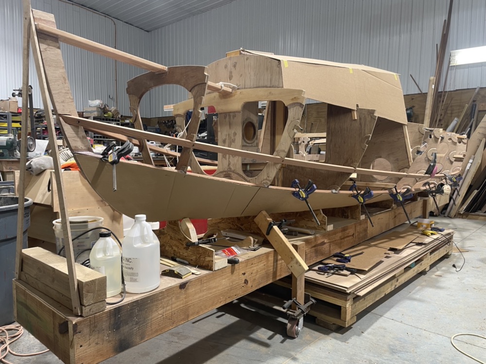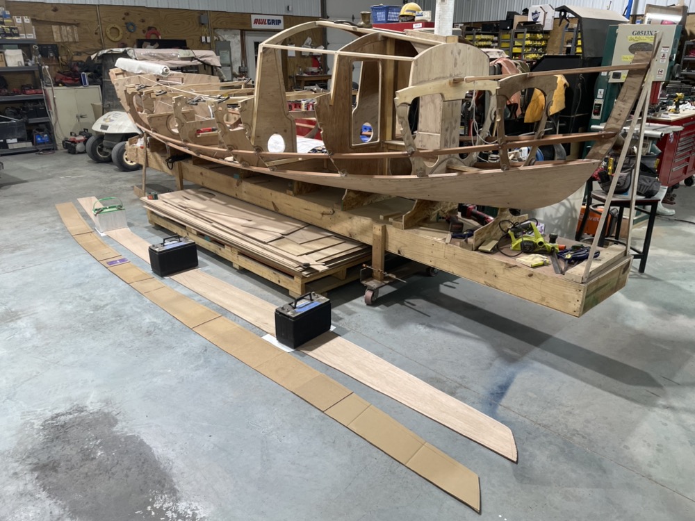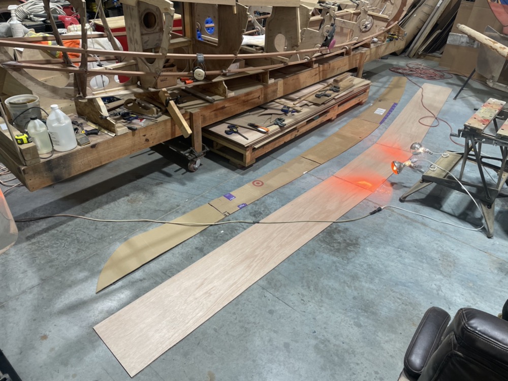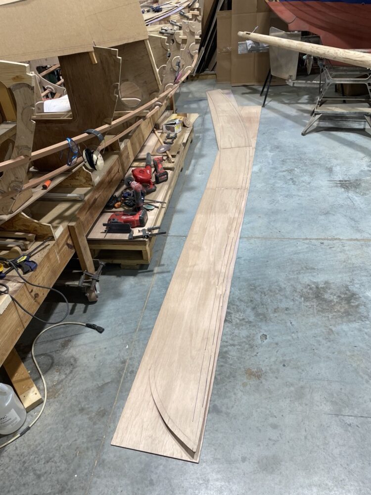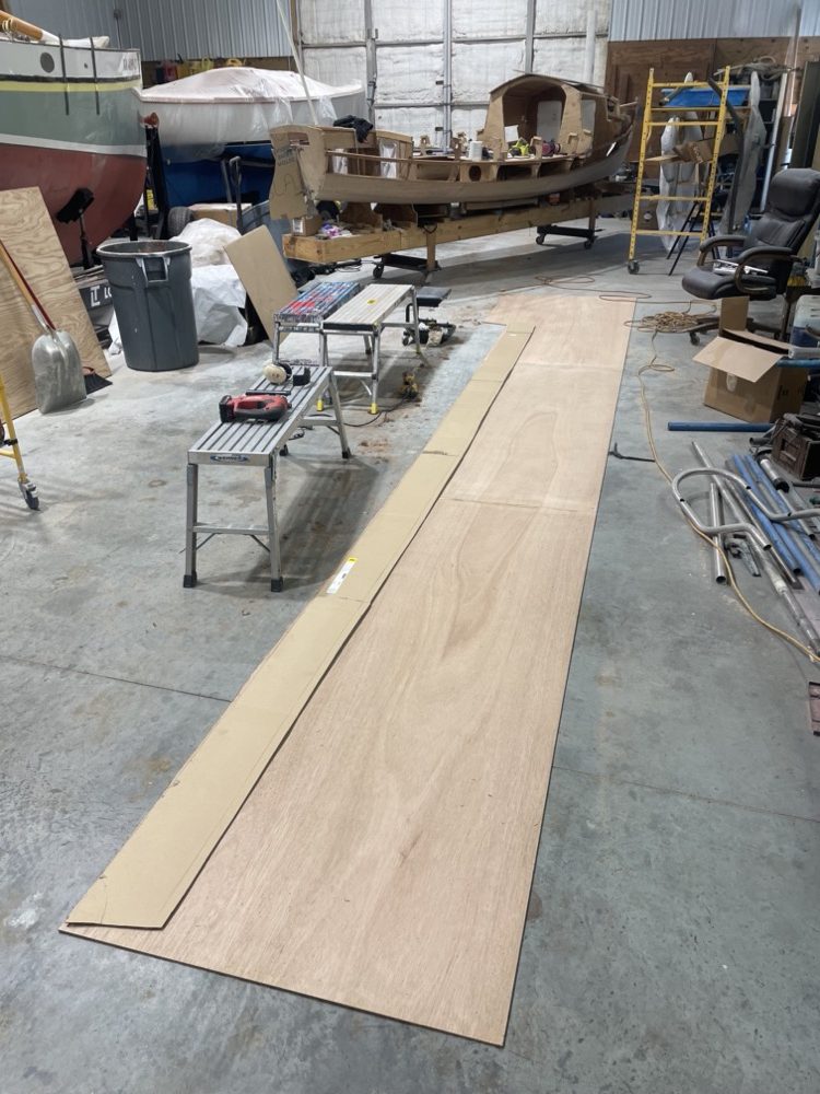 Then I scarfed up a 24′ long sheet of plywood and cut out two planks.