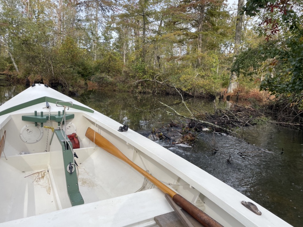 Eventually I ran up on a beaver dam 1/2 a mile further along than last year. I ate lunch and listened to the gurgle of a pretty impressive flow of water. I wonder how or even if the tides affect the water level this far up. Maybe next year I need to pull the boat over the dam and see what’s past the bend!