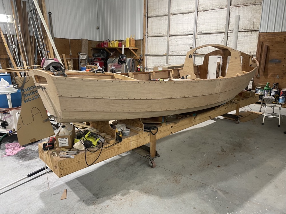 Planking is finally finished! Finishing the inside is going to be more difficult, but my wife has been out of town and I figure it’s a better use of the larger chunks of time I have. Between now and Christmas we’ll be non stop hauling boats out for the winter so I won’t have much time at all to work on it.