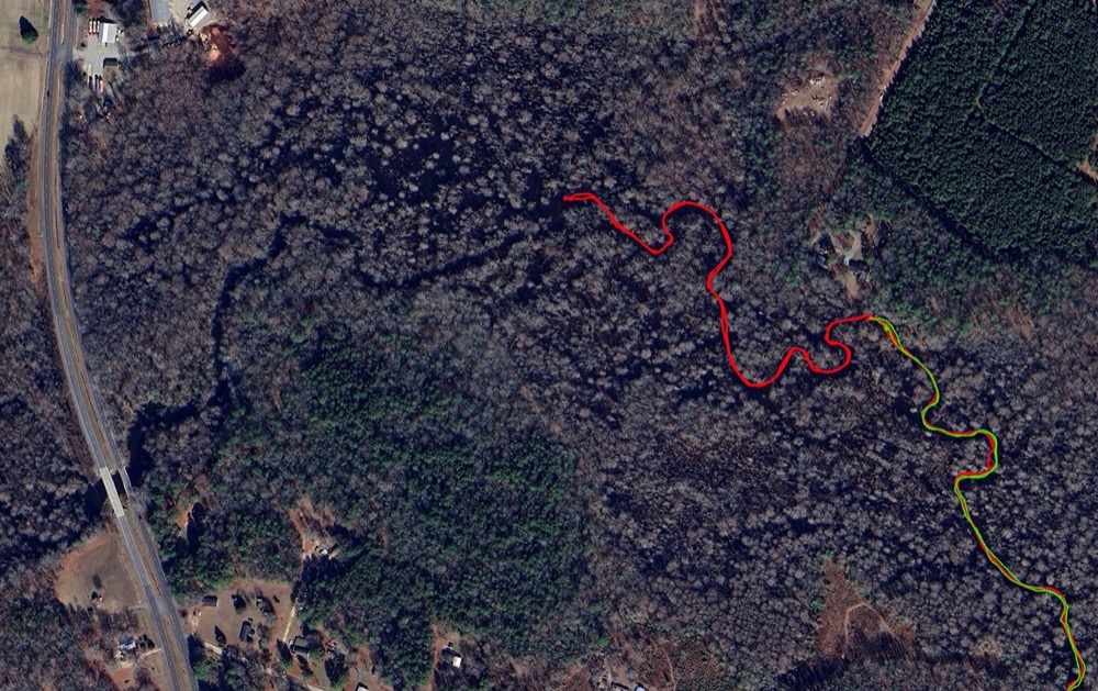 Coming back through the tightest spot on the river.