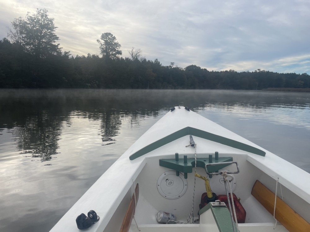 I left the boat ramp at 7am with a pink sunrise. Fifteen minutes later the sun started to peak over the treelined shore. Two older guys from Richmond were launching a jon boat and asked a few questions about mine.