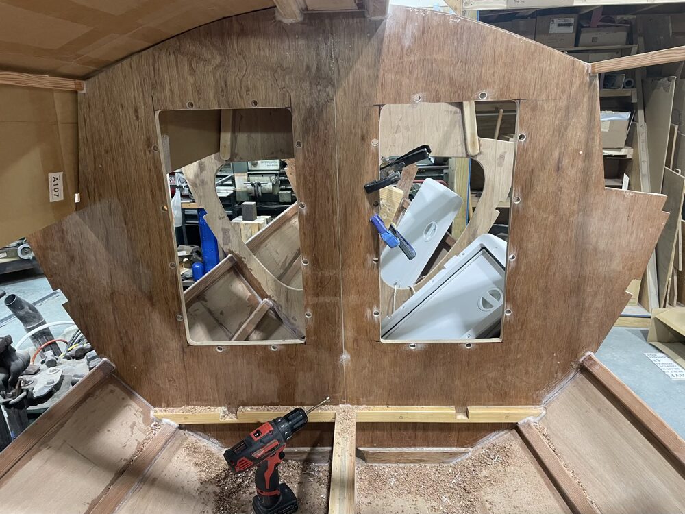 Moving forward I drilled some holes to be filled with 404 for the hatches in the dodger.