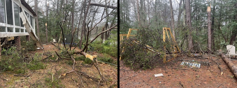 Back in March we had an 80 mph straight line wind storm that took out a pair of trees close to the house. One hit the corner of the sunroom and the other took out my son’s play set and a zip line I’d built. So most of March and part of April were filled with rafter repairs, 2′ x 32′ of shingling, hunting down a leak that ended up just being rain blown under the unfinished soffit, cutting down and removing trees, and rebuilding the play set and zip line. Could have been a lot worse though! A house down the street had a couple huge oak trees fall on it.