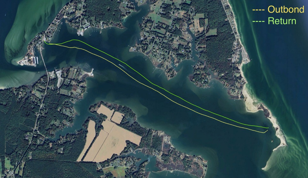A past GPS track out to the sandbar. It’s about 2.5 miles one way.